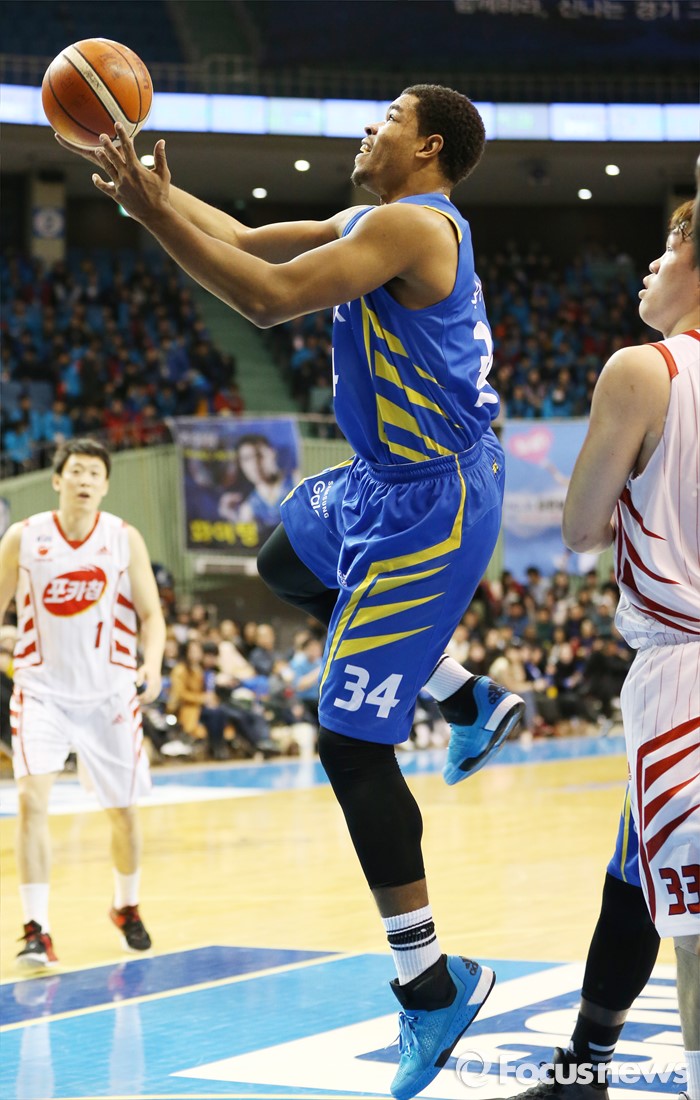 (서울=포커스뉴스) 24일 서울 잠실실내체육관에서 열린 2015-2016 프로농구 삼성-오리온 경기에서 삼성 에일 와이즈가 골밑에서 점프슛을 시도하고 있다.