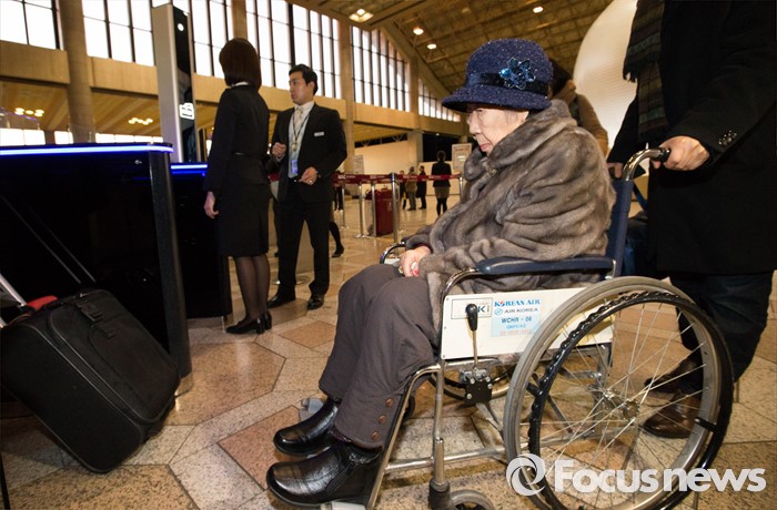 (서울=포커스뉴스) 지난 해 12월 28일 한일 위안부 문제 합의 이후 처음으로 일본을 방문하여 위안부 피해 참상을 증언하기 위해 위안부 피해자 강일출 할머니가 25일 오전 서울 김포공항에서 출국장으로 들어가고 있다.