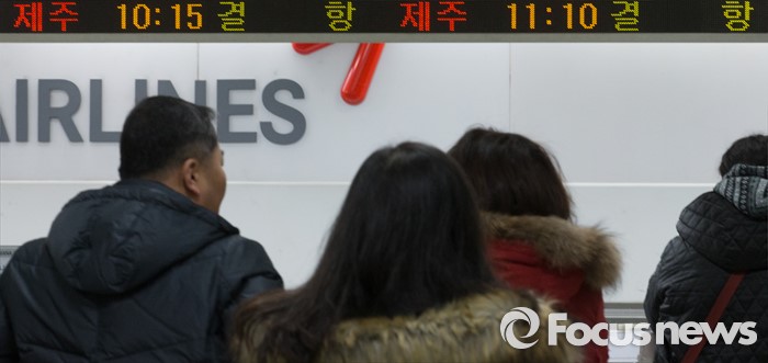 (서울=포커스뉴스) 25일 오전 서울 김포공항 국내선 청사에 제주와 김포로 오가는 항공편의 결항 안내문이 게시되고 있다.
