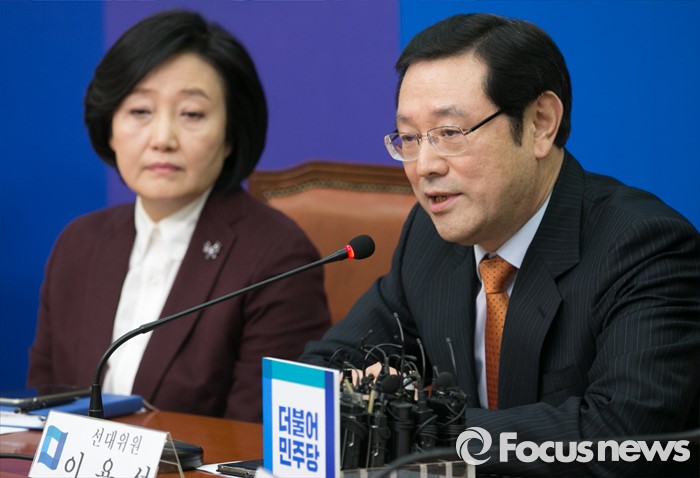 (서울=포커스뉴스) 25일 오전 서울 여의도 국회에서 열린 더불어민주당 1차 중앙선거대책위원회의에 참석한 이용섭 선대위원이 인사말을 하고 있다.