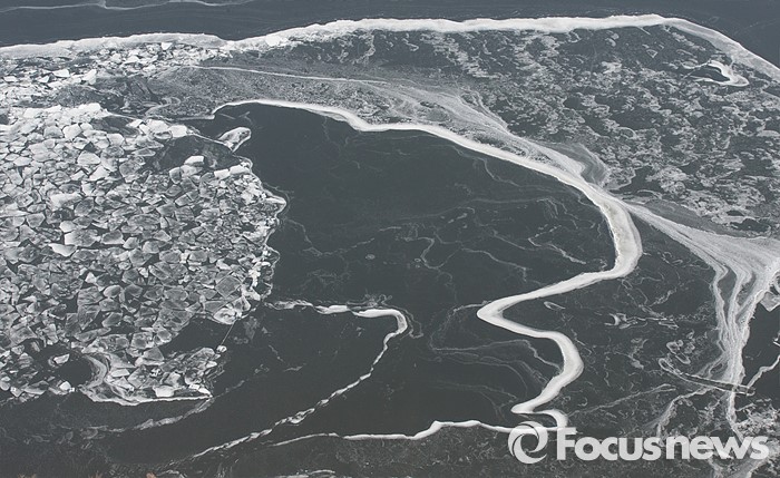 (서울=포커스뉴스) 연일 강추위가 계속되고 있는 25일 오전 서울 영등포구 63빌딩에서 바라본 한강 일대가 얼어붙어 있다.