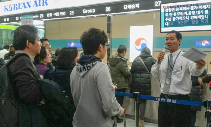 (서울=포커스뉴스) 32년 만에 폭설로 제주국제공항이 폐쇄된지 3일째 되는 25일 오후 제주국제공항 대합실에 모인 관광객들이 항공권을 발권하기 위해 줄을 서 있다. 국토교통부는 25일 오후 12시를 기해 운항을 재개한다고 밝혔다. 하지만 항공기에 쌓인 눈을 제거하는 등 작업들이 남아 있어 실제적인 운항재개는 오후 3시부터 이루어질 전망이다. <사진제공=김세희 사진가>