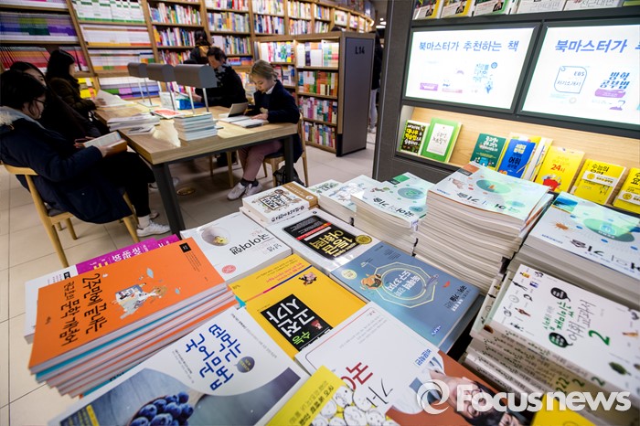 (서울=포커스뉴스) 서울 한 낮 기온이 영하권에 머물며 연일 강추위가 이어지고 있는 25일 오후 서울 종로구 교보문고 광화문점에서 개학을 앞둔 중고생들과 학부모들이 참고서를 보고 있다.