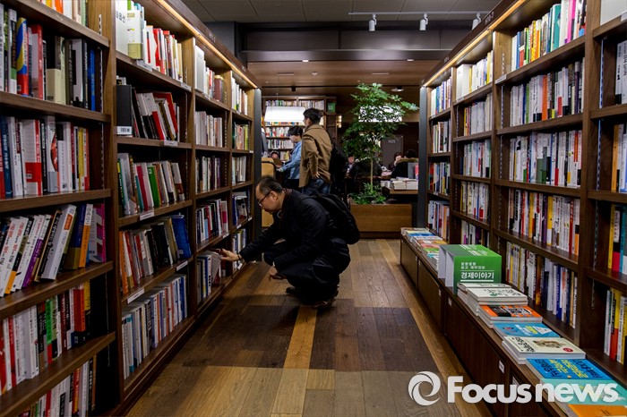 (서울=포커스뉴스) 서울 한 낮 기온이 영하권에 머물며 연일 강추위가 이어지고 있는 25일 오후 서울 종로구 교보문고 광화문점을 찾은 고객들이 추위를 피하며 독서 하고 있다.
