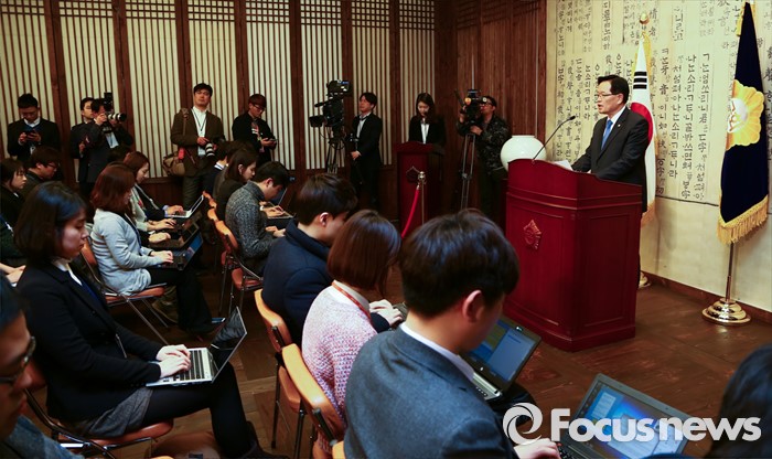 (서울=포커스뉴스) 정의화 국회의장이 25일 오후 서울 여의도 국회에서 20대 총선 불출마 선언 및 국회 선진화법 개정안에 대한 중재안 발표 기자회견을 하고 있다.