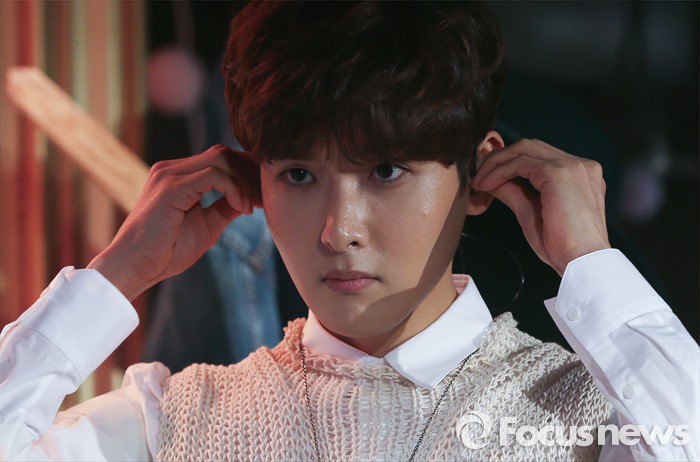 (서울=포커스뉴스) 25일 오후 서울 용산구 현대카드 언더스테이지에서 열린 미니앨범 '어린왕자' 쇼케이스에 참석한 가수 려욱이 신곡 '어린왕자'의 무대를 선보이기 전 이어폰을 착용하고 있다.