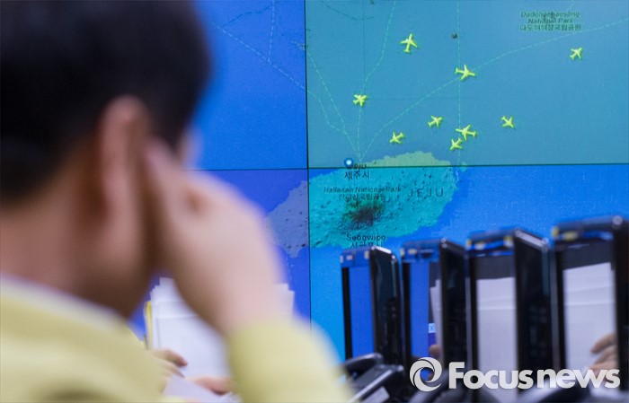 (세종=포커스뉴스) 26일 오전 세종시 정부세종청사 국토교통부 제주공항체류여객 비상수송대책본부에서 관계자들이 제주도 인근 운항상황을 점검하고 있다.