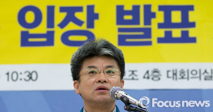 (서울=포커스뉴스) 26일 오전 서울 서대문구 전국교직원노동조합 대회의실에서 변성호 전교조 위원장이 법외노조통보 항소심 판결과 교육부 후속조치에 대한 전교조 입장 발표 기자회견에 참석해 인사말을 하고 있다.