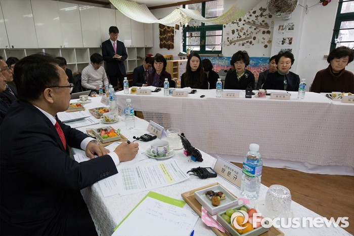 (서울=포커스뉴스) 유일호 경제부총리 겸 기획재정부 장관이 26일 오전 서울 강서구 보라유치원에 방문해 유치원 관계자 및 학부모들과 간담회를 열고 있다.