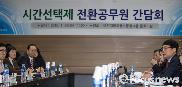 (대전=포커스뉴스) 고영선 고용노동부 차관이 26일 오전 대전 서구 대전지방고용노동청에서 열린 시간선택제 전환공무원 간담회에 참석해 의견을 나누고 있다.
