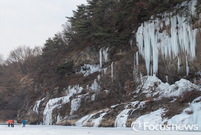 (철원=포커스뉴스) 26일 오전 강원 철원군 한탄강 일대에서 여행객들이 얼음트래킹을 즐기고 있다.