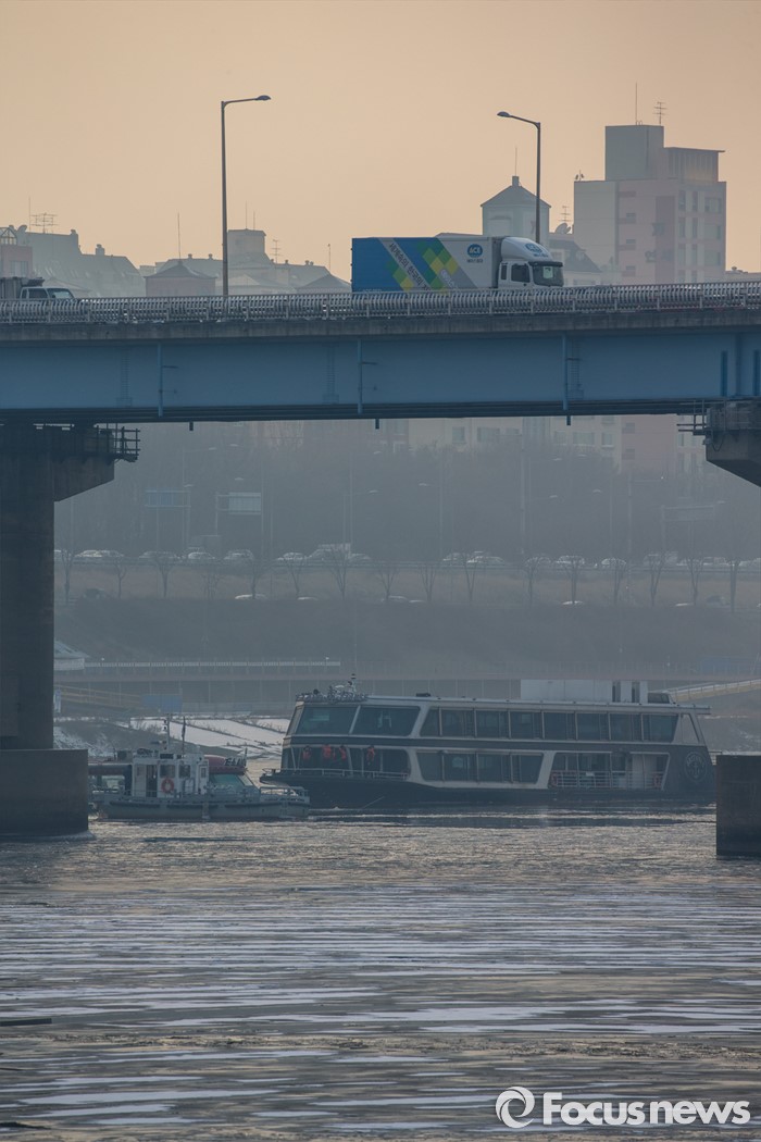 (서울=포커스뉴스) 26일 오후 서울 한강 영동대교 인근을 지나던 한강유람선이 침수, 구조대원들이 구조활동과 견인 작업을 하고 있다.