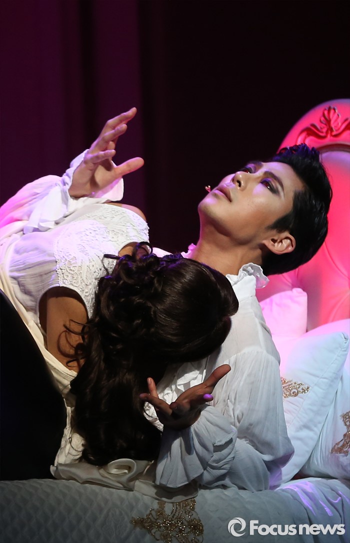 (서울=포커스뉴스) 26일 오후 서울 종로구 세종문화회관에서 열린 뮤지컬 '드라큘라' 프레스콜에 참석한 배우 박은석(오른쪽)이 하이라이트 공연을 선보이고 있다.