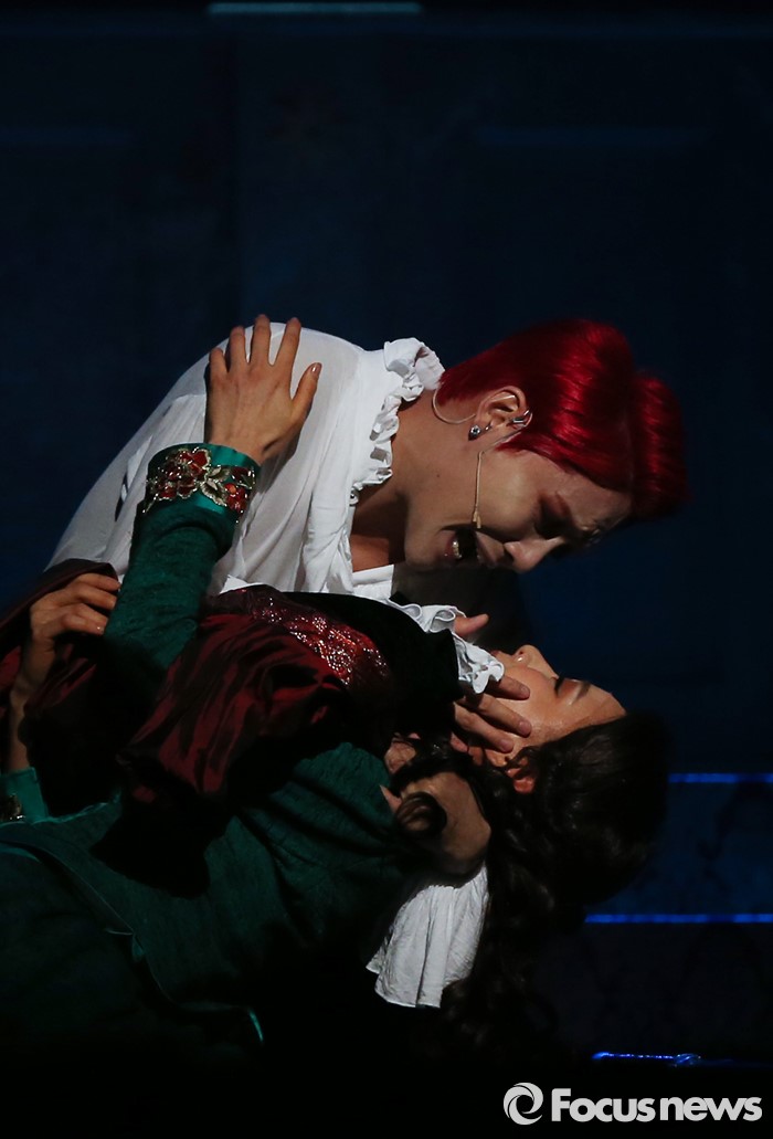 (서울=포커스뉴스) 26일 오후 서울 종로구 세종문화회관에서 열린 뮤지컬 '드라큘라' 프레스콜에 참석한 배우 김준수가 하이라이트 공연을 선보이고 있다.