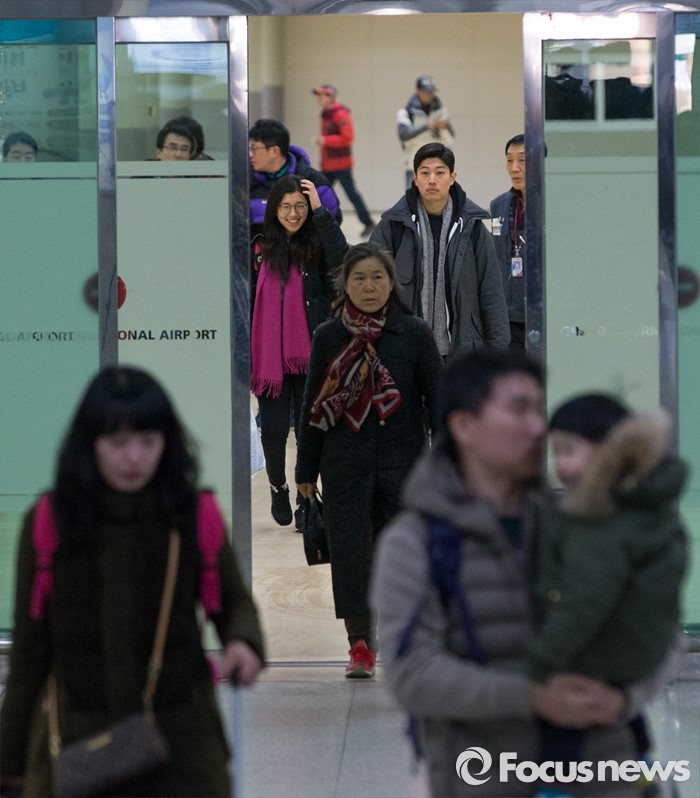 | △ 제주공항 운항 재개로 입국하는 탑승객들 |