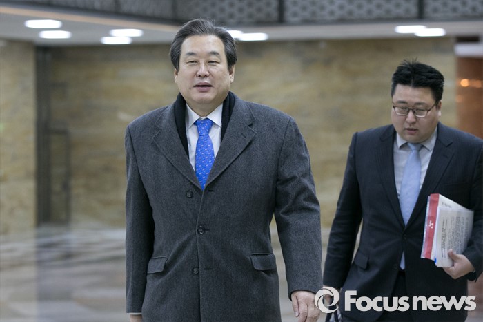 (서울=포커스뉴스) 김무성(왼쪽) 새누리당 대표가 27일 오전 서울 여의도 국회 귀빈식당에서 비공개로 진행된 법조전문자격사포럼 조찬 간담회에 참석하기 출근하고 있다.