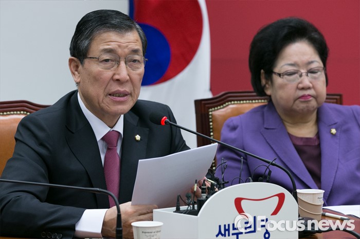 (서울=포커스뉴스) 새누리당 총선기획단장인 황진하(왼쪽) 사무총장이 27일 오전 서울 여의도 국회에서 열린 최고중진연석회의에 참석해 발언하고 있다.
