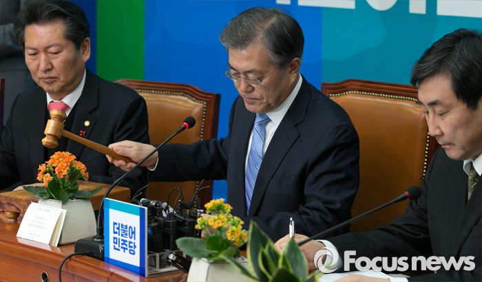(서울=포커스뉴스) 문재인 더불어민주당 대표가 27일 오전 서울 여의도 국회에서 열린 최고위원회의에 참석해 개의 선언을 하고 있다.