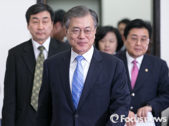 (서울=포커스뉴스) 문재인 더불어민주당 대표 등 지도부가 27일 오전 서울 여의도 국회에서 열린 최고위원회의에 참석하고 있다.