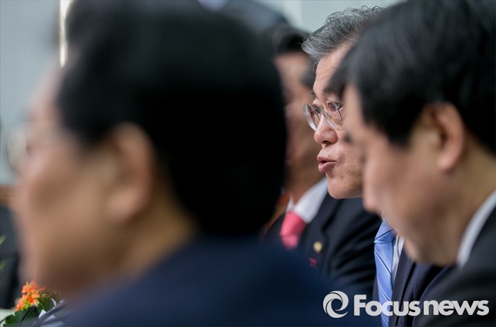 (서울=포커스뉴스) 문재인 더불어민주당 대표가 27일 오전 서울 여의도 국회에서 열린 최고위원회의에 참석해 모두발언을 하고 있다.