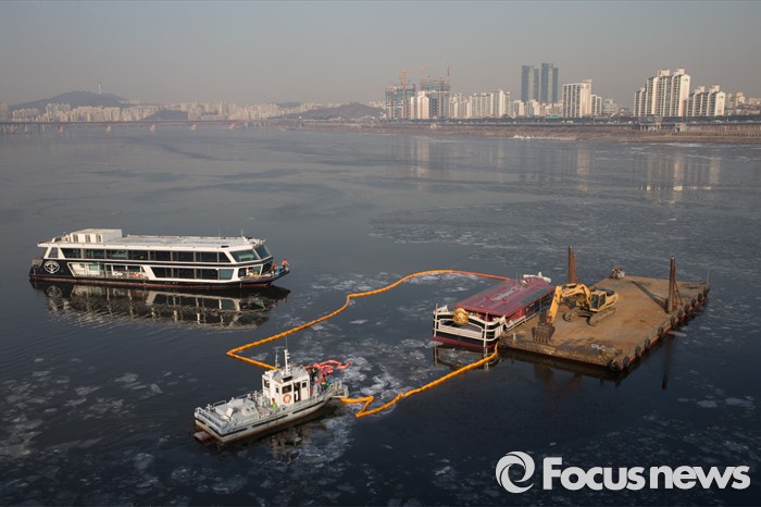 소방당국은 유람선 안에 남아있는 기름이 유출될 것을 대비해 유람선 주변에는 흡착포를 뿌려뒀다.