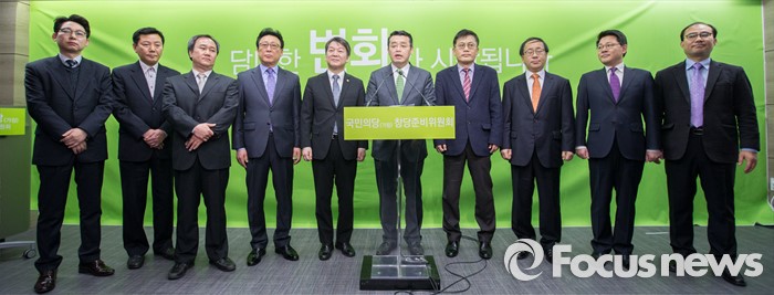 (서울=포커스뉴스) 더불어민주당 출신 정무직 당직자들이 27일 오전 서울 마포구 국민의당 당사 브리핑룸에서 안철수 인재영입위원장과 함께 입당기자회견을 하고 있다.