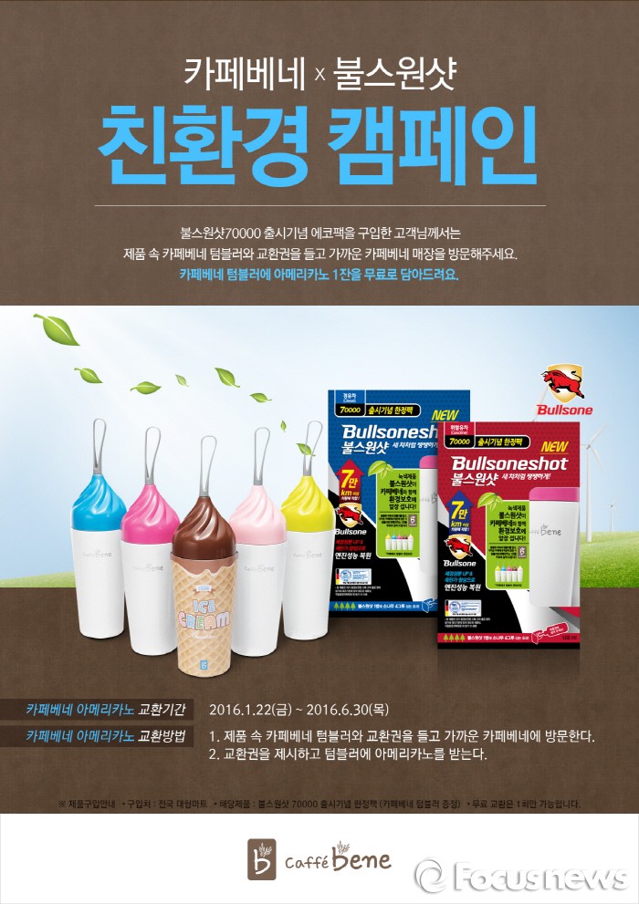 (서울=포커스뉴스) 커피전문점 카페베네는 엔진세정제 브랜드 불스원샷과 함께 친환경 캠페인을 오는 6월까지 전개한다.