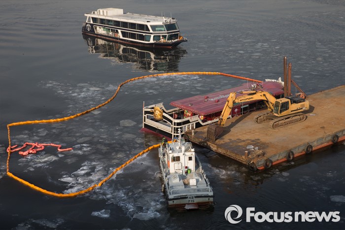 소방당국은 유람선 안에 남아있는 기름이 유출될 것을 대비해 유람선 주변에는 흡착포를 뿌려뒀다.