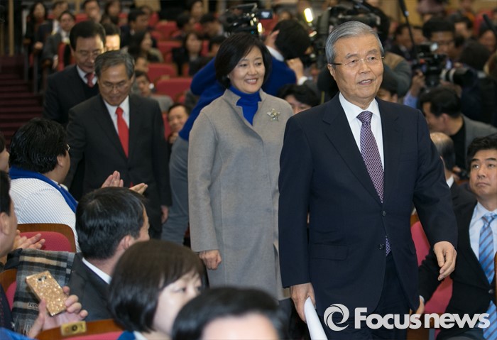 (서울=포커스뉴스) 27일 오후 서울 여의도 국회에서 열린 더불어민주당 중앙위원회의에 김종인 선대위원장 겸 비대위원장과 비대위원들이 참석하고 있다.