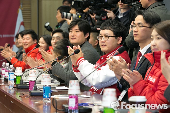 (서울=포커스뉴스) 새누리당 청년 예비후보들이 27일 오후 서울 여의도 국회 의원회관에서 열린 청년 공천 설명회에 참석해 박수치고 있다.