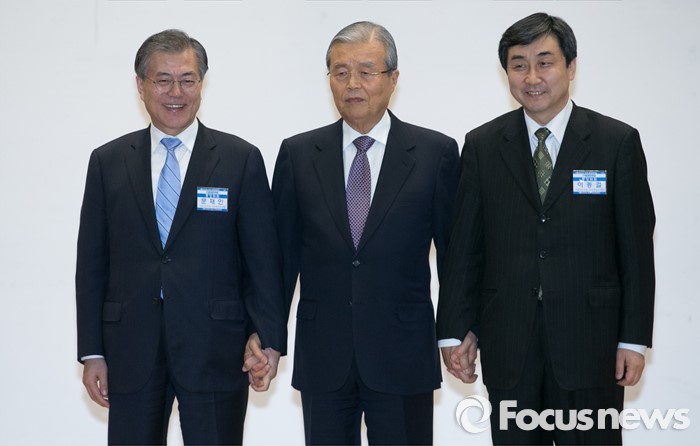 | △ 손 잡은 문재인-김종인-이종걸 |