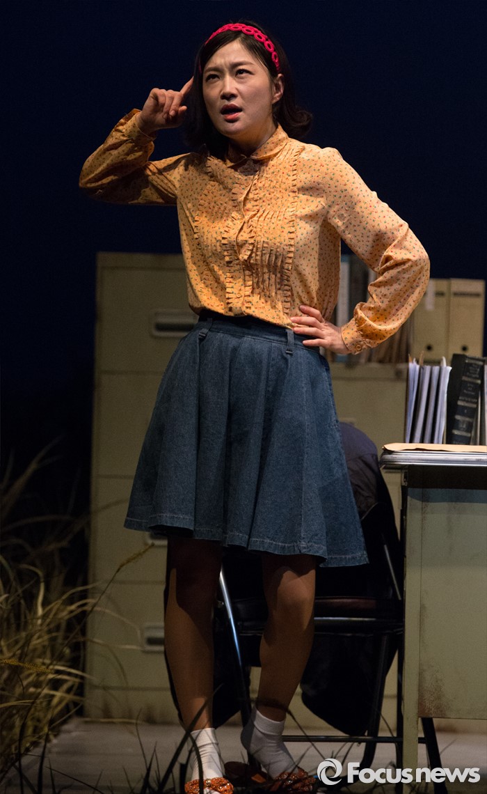 (서울=포커스뉴스) 27일 오전 서울 중구 명동예술극장에서 열린 연극 '날 보러와요' 프레스콜에 배우 공상아(미스김)가 연기하고 있다.