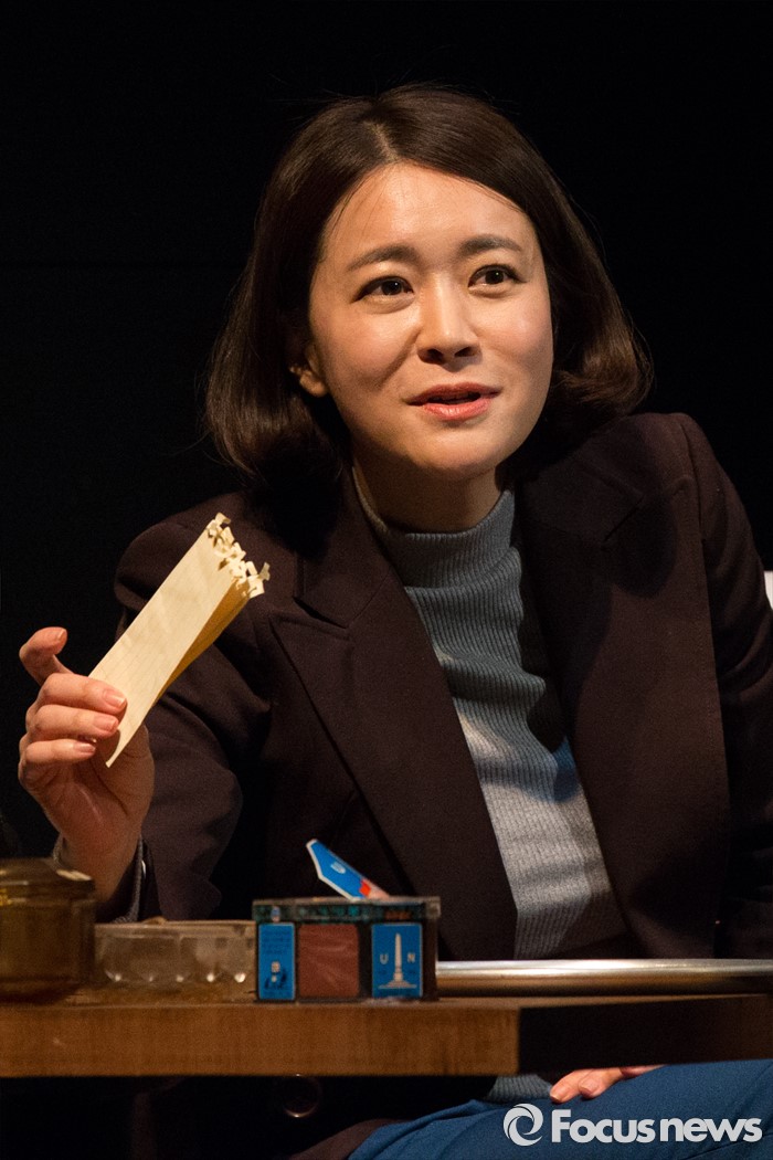 (서울=포커스뉴스) 27일 오전 서울 중구 명동예술극장에서 열린 연극 '날 보러와요' 프레스콜에 배우 이항나(박기자)가 연기하고 있다.