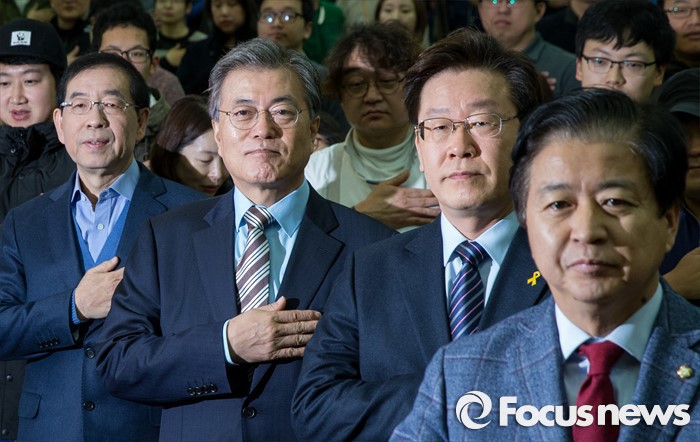 | △ 국민의례 하는 박원순-문재인-이재명 |