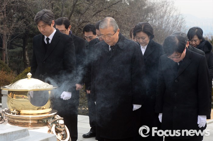 (서울=포커스뉴스) 28일 오전 서울 동작구 국립서울현충원에서 김종인 선거대책위원장 겸 비대위원장이 박정희 전 대통령 묘역 참배를 하고 있다.