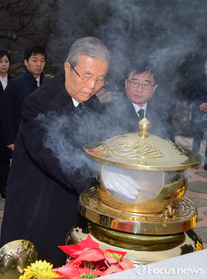 (서울=포커스뉴스) 28일 오전 서울 동작구 국립현충원을 찾은 김종인 더블어민주당 비상대책위원장이 비대위원들과 김대중 전 대통령 묘역을 참배하고 있다.
