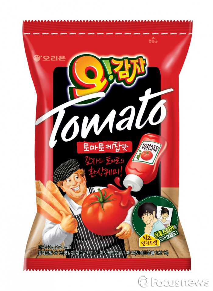 오리온은 감자튀김을 먹을 때 토마토케첩을 많이 찾는 데서 착안해 토마토케첩맛 시즈닝을 개발했다. 토마토를 활용한 신제품으로 짭짤한 맛과 단맛 위주의 스낵시장에서 새로운 트렌드를 만들 것으로 기대한다고 밝혔다.