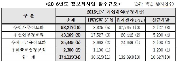 (서울=포커스뉴스) 2016년도 우정 정보화사업이 총 34개 사업 1741억원 규모로 추진된다.