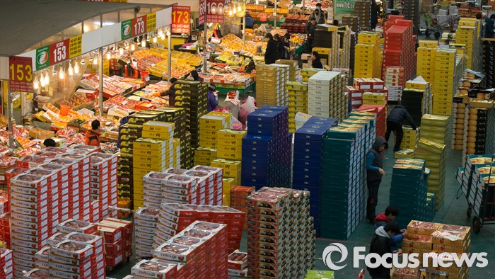 (대전=포커스뉴스) 설 멸정을 앞두고 28일 오전 대전 유성구 농수산물도매시장에서 상인들이 대목준비에 바쁘게 움직이고 있다.