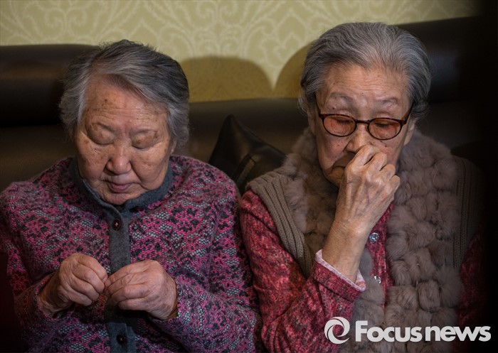 (서울=포커스뉴스) 28일 오전 서울 마포구 평화의 우리집에서 열린 일본군'위안부' 문제합의 관련, 유엔 청원서 제출 기자회견에 참석한 길원옥(왼쪽), 김복동 할머니가 굳은 표정을 짓고 있다.