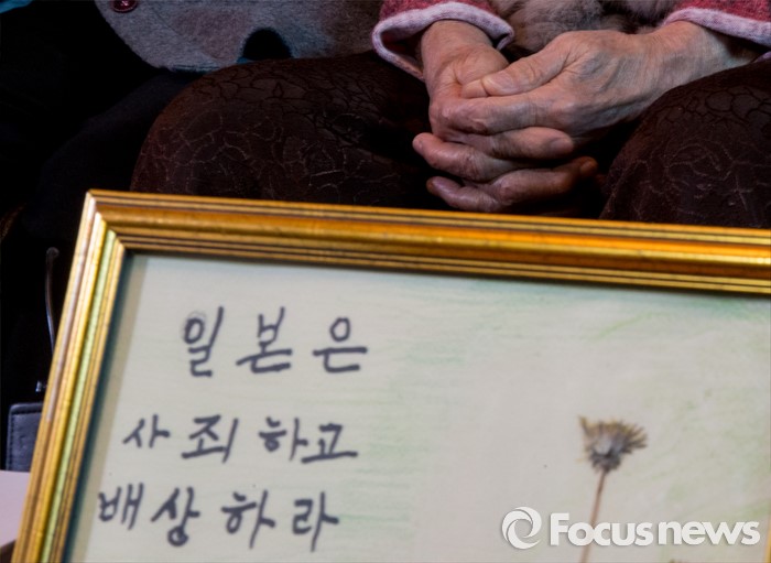 (서울=포커스뉴스) 28일 오전 서울 마포구 평화의 우리집에서 열린 일본군'위안부' 문제합의 관련, 유엔 청원서 제출 기자회견에 참석한 김복동 할머니가 두 손을 모으고 있다.