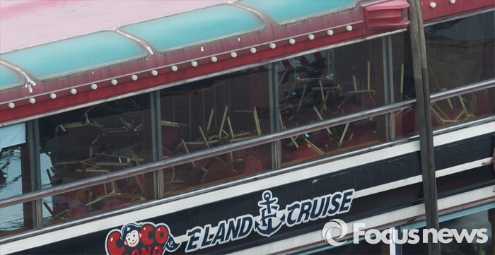 (서울=포커스뉴스) 28일 오후 서울 한강 영동대교 인근에서 침수된 이랜드 크루즈 유람선 내부에 의자들이 뒤엉켜 있다.