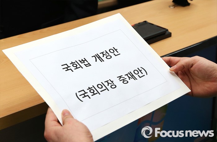 (서울=포커스뉴스) 28일 오후 서울 여의도 국회에서 국회의장실 장우진 정무비서관이 정의화 국회의장이 대표발의한 국회법 개정안 중재안을 의안과에 제출하고 있다.