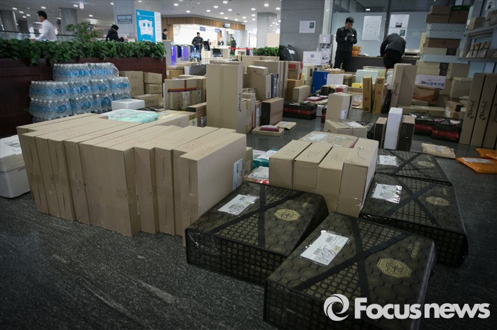 (서울=포커스뉴스) 설을 열흘여 앞둔 28일 오후 서울 여의도 국회 의원회관에 의실로 배달된 택배들이 쌓여 있다.