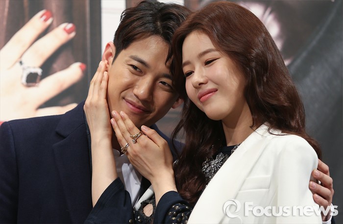 (서울=포커스뉴스) 28일 오후 서울 강남구 임피리얼 팰리스 호텔에서 열린 KBS 2TV 저녁 일일드라마 ' 천상의 약속' 제작발표회에 참석한 배우 서준영(왼쪽)과 박하나가 포토타임을 갖고 있다.