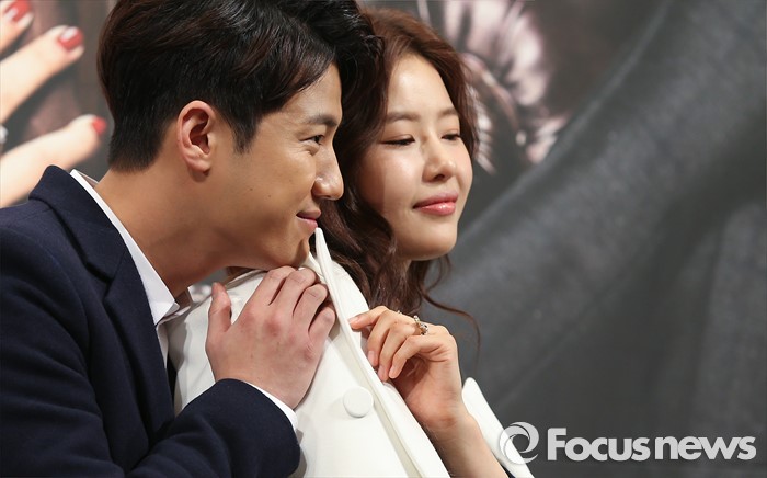 (서울=포커스뉴스) 28일 오후 서울 강남구 임피리얼 팰리스 호텔에서 열린 KBS 2TV 저녁 일일드라마 '천상의 약속' 제작발표회에 참석한 배우 서준영(왼쪽)과 박하나가 포토타임을 갖고 있다.