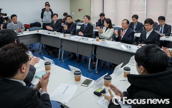 (서울=포커스뉴스) 28일 오후 서울 강남구 창업지원센터에서 열린 '국민의당-핀테크 기업인 간담회'에 참석한 안철수 인재영입위원장이 인사말을 하고 있다.