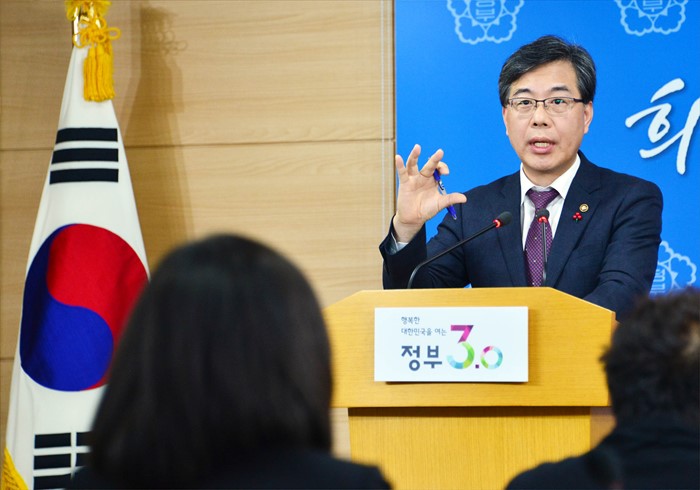 (서울=포커스뉴스) 송언석 기획재정부 차관이 28일 서중 종로구 정부서울청사 브리핑룸에서 공공기관 성과연봉제 확대 실시와 관련하여 브리핑을 하고 있다. <사진제공=기획재정부>