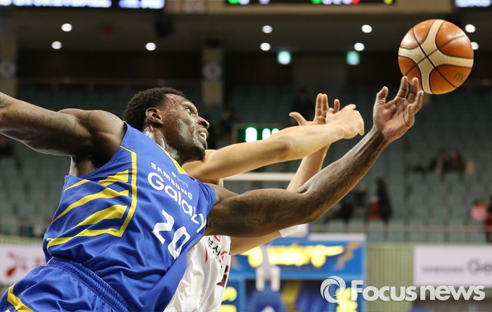 (서울=포커스뉴스) 28일 서울 잠실실내체육관에서 열린 2015-2016 프로농구 삼성-KT 경기에서 삼성 라틀리프와 KT 박상오가 리바운드를 다투다 볼을 놓치고 있다.