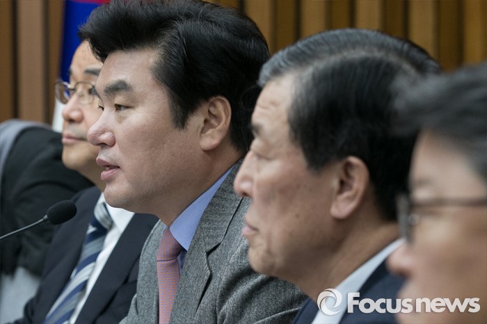 (서울=포커스뉴스) 원유철(왼쪽 두번째) 새누리당 원내대표가 29일 오전 서울 여의도 국회에서 열린 원내대책회의에 참석해 모두발언하고 있다.